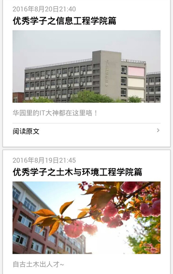 为帮助新生了解学校各二级学院的情况,官方微信平台从8月19日至29日陆续推出11篇 “优秀学子之二级学院篇”专题,分别介绍了11个二级学院的专业、环境、教研成果等特色,以便新生直接、细致了解自己所在学院的具体情况,近年来各二级学院毕业的众多优秀学子事迹,也给了新生最大的鼓舞。同时,官方微信还推出了“约定华园”“梦启华园”等线上活动,为新生送上“入学礼物”。