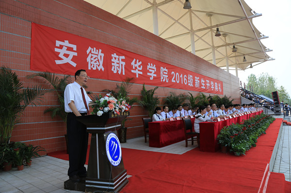开学典礼上,校长石秀和代表学校向2016级新生的到来表示热烈的欢迎和衷心的祝贺。石秀和从发展历史、办学宗旨、办学思路、育人理念等方面介绍了贝博官网的基本概况,回顾了贝博官网在近几年来取得的喜人成果。接着,他对2016级新生提出四点希望:一是功崇惟志,业广惟勤。石秀和用“到大学来做什么?毕业后又想成为什么样的人?”两个问题,勉励新生们用实际行动架起理想与现实之间的桥梁,作出无愧于自己和时代的回答。二是博学笃行,兼容并蓄。石秀和要求同学们珍惜大学时光,在实践中学真知、悟真谛,加强磨练、增长本领,从而确保在未来的人才竞争中立于不败之地;三是严于律己,文明修身。作为新时代的大学生,要立足平实,从小事做起;砥砺人格,要管好小节;养成良好的行为习惯,塑造文明高雅的个人品质。四是求真务实,开拓创新。身处人生最宝贵时期的新华学子,要在实干中练就创新的思维,掌握创业的本领,让创新成为青春远航的动力,让创业成为青春搏击的能量。最后,石秀和寄语全体新生,期待大家秉承“厚德、求真、博学、创新”的校训精神,和学校事业一起成长,与全校教职员工一同进步,为学校实现地方应用型一流高校和全国一流高水平民办大学的“双一流”目标贡献自己的一份力量。