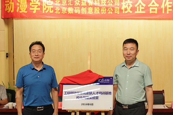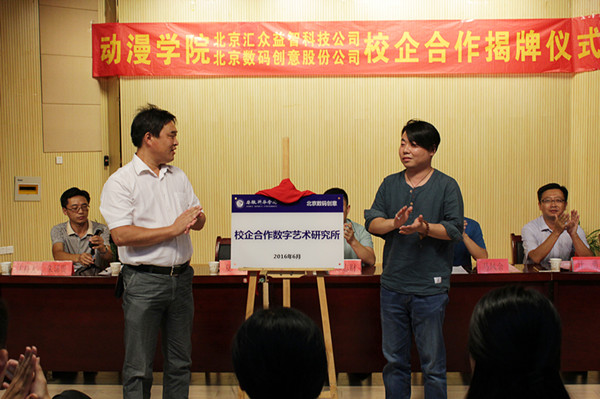 随后,许存福、夏冕为分别代表学院和北京创意科技公司为双方共建的数字艺术研究所揭牌,马凤余和邢志财代表学院和北京汇众益智科技集团为校企合作共建的“CSIP NITE 游戏动漫人才实训基地”揭牌。