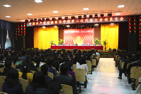 本网讯(王友雅,摄影:陆如海、金政)根据党章要求和中共安徽省委教育工委的统一安排,经校党委会专题研究,中国共产党BB贝博艾弗森官方网站第二次代表大会将于2017年5月26日召开。3月20日下午,中共BB贝博艾弗森官方网站第二次代表大会动员大会在贝博官网大礼堂隆重召开,省政府督导专员、校党委书记储国定,校党委副书记、新华集团副总裁、学校副董事长王孝武,新华集团副总裁、学校执行董事陆真,校党委委员、校长石秀和,校党委委员、副校长马凤余,副校长王丽,校党委委员、校长助理朱兆健,校党委委员、土木与环境工程学院党总支书记、执行院长蒋亚龙,校党委委员、外国语学院党总支书记、执行院长邵玲出席会议,全体教职工党员、学生正式党员(不含毕业班)和学生预备党员代表参加会议。会议由王孝武主持。