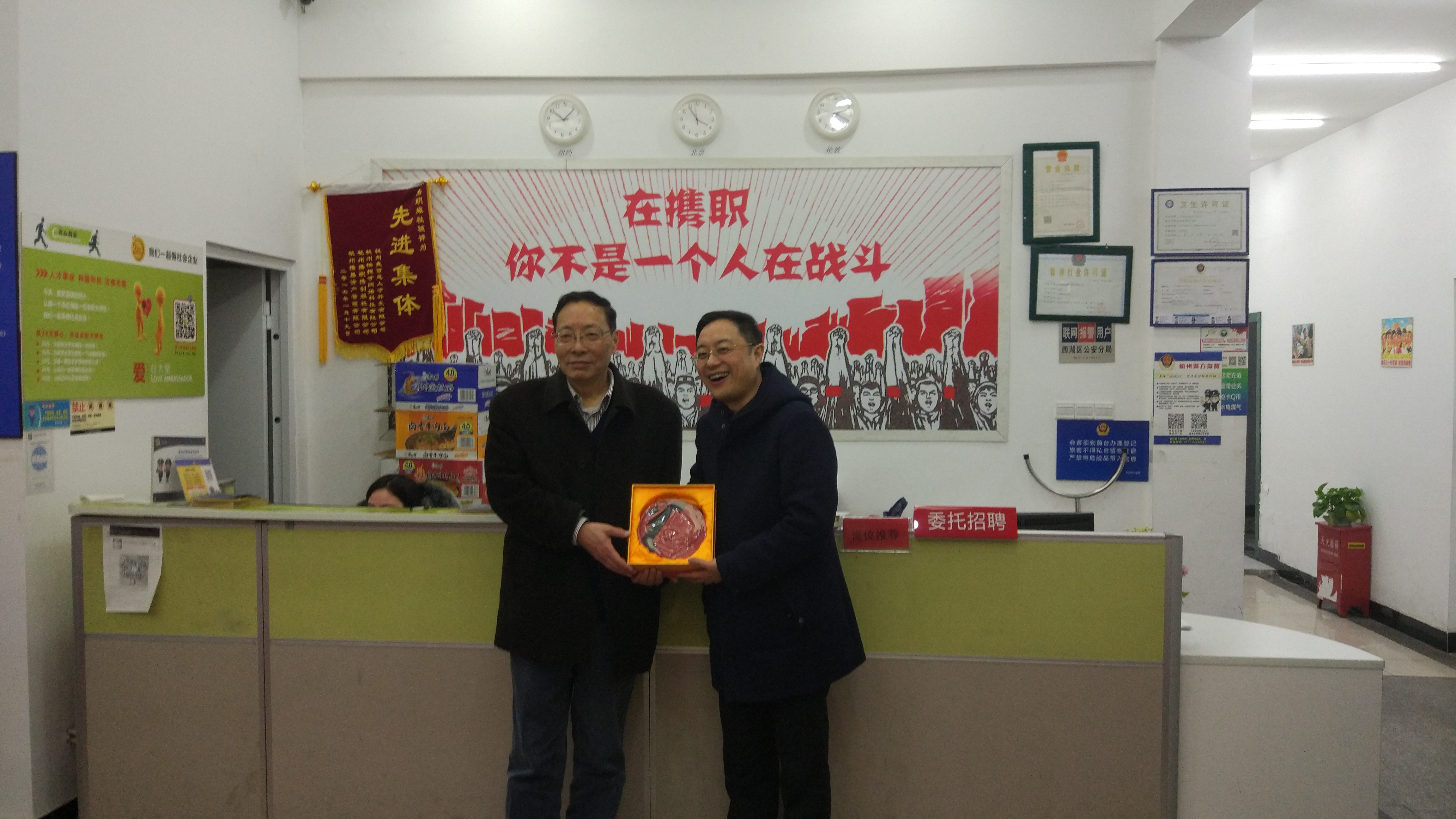 3月16日下午,浙江携职就业创业学院董事长温少波、院长竺海康接待了石秀和一行。温少波带领贝博官网考察团参观了携职就业创业学院的求职公寓,感受携职为大学生提供的温馨服务,石秀和还参与了携职“28元赠大学生免费求职床位”的活动,并在赠与卡上留言,勉励大学生“今日脚踏实地,明日翱翔蓝天”。