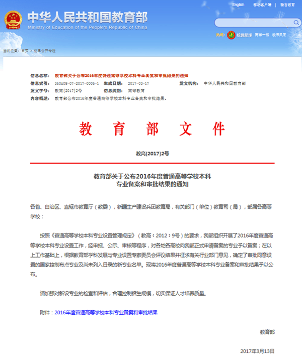 本网讯(通讯员:孙雁南)近日,教育部下发《教育部关于公布2016年度普通高等学校本科专业备案和审批结果的通知》(教高[2017]2号),贝博官网申报的商务经济学(020105T)、会计学(120203K)、审计学(120207)、表演(130301)、艺术与科技(130509T)、互联网金融共6个本科专业获准设置。其中,互联网金融专业不仅是贝博官网首次获批设置的国家目录外新专业,而且是国家首次同意设置的专业。