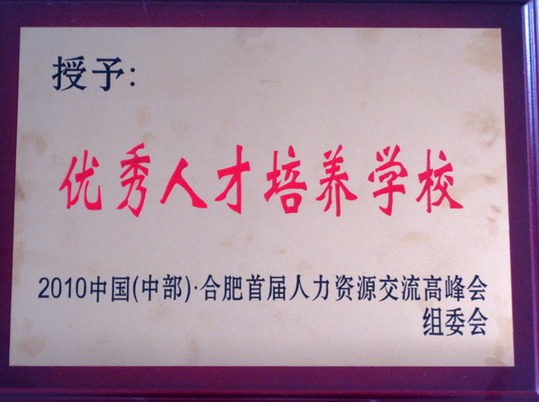 3月6日至7日,2010年中国(中部)合肥首届人力资源交流高峰会暨第二届(泛长三角)中东部联合封闭式校企对接会在高新区科技创新公共服务中心举行。会上举行了现场授牌仪式,授予我院2010年中国(中部)合肥首届人力资源交流高峰会组委会颁发的“优秀人才培养学校”荣誉称号。