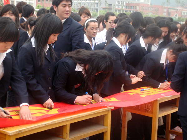 最后,同学们齐聚主席台前进行以“让青春朝气点缀心底,让文明之花烂漫校园”为主题的签名活动。活动在激扬的团歌中结束,本次活动让我院的广大团员青年们热血沸腾,他们将以激扬的热情投入到以后的学生和生活中。(团委)