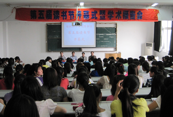 5月19日下午,以“华韵书香,悦读天下”为主题的第五届读书节开幕式在行政楼三南多媒体教室隆重举行,副院长马凤余、图书馆馆长费业昆出席了开幕式,中国科技大学宁业高教授应邀出席并作学术报告。