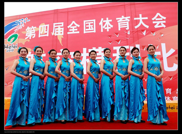 2010年5月16日,第四届全国体育大会在合肥市体育中心拉开帷幕,我院礼仪队员承担了在炮兵学院的航空模型比赛以及天鹅湖公开水域游泳比赛项目的颁奖任务。