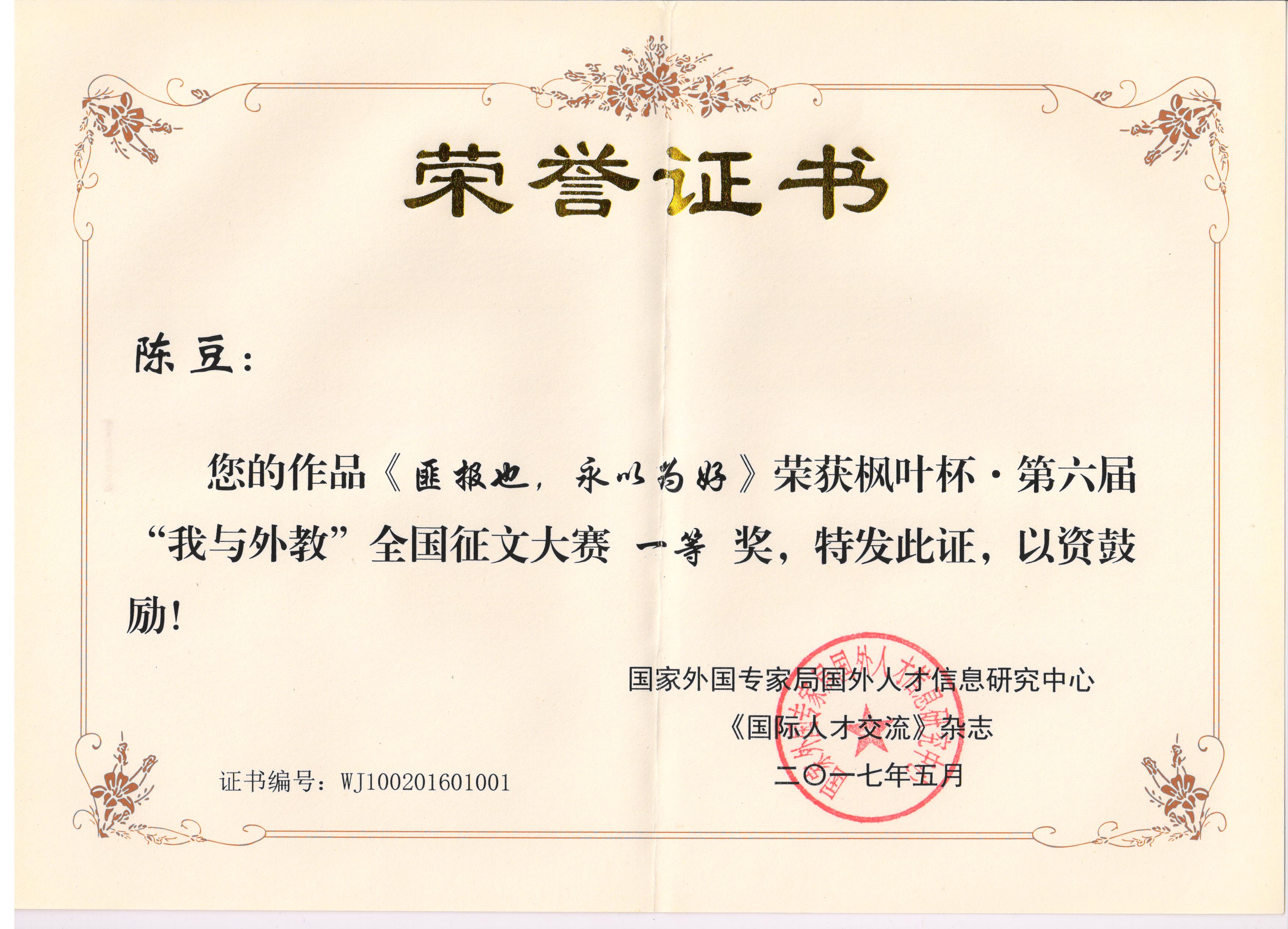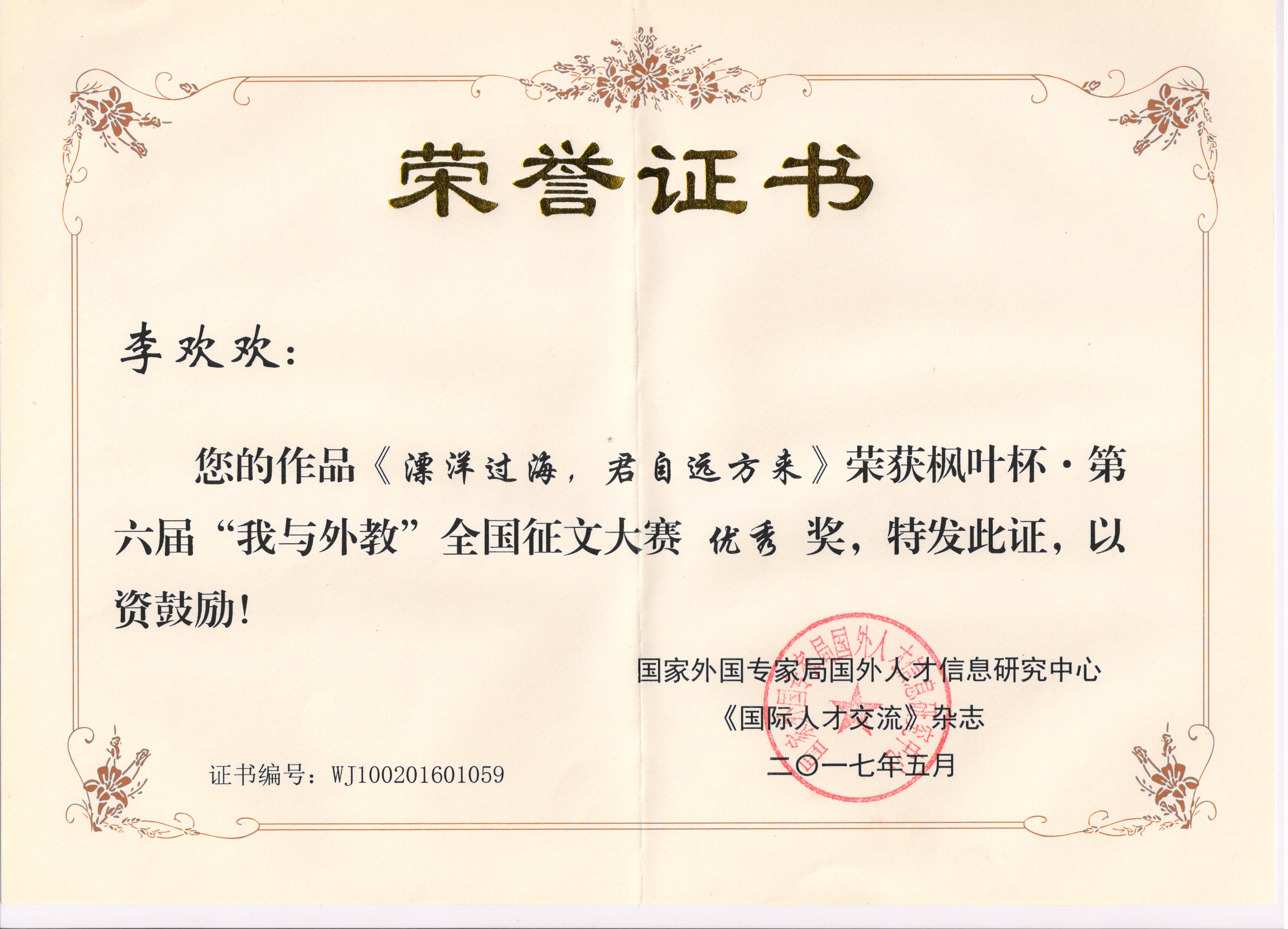 贝博官网在“枫叶杯”2016“我与外教”全国征文大赛中喜获佳绩