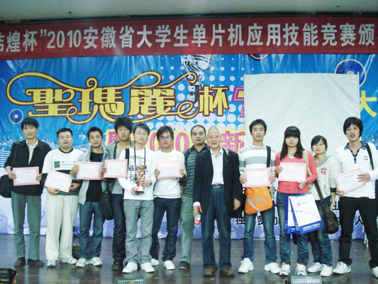 安徽省2010年“炜煌”杯大学生单片机应用技能竞赛于10月16日在阜阳师范学院举行,由本科和专科两个组别同时展开。本届比赛吸引了来自合肥工业大学、合肥师范学院等20余所高校的50多支队伍参赛。经过激烈而紧张角逐,我院选手们冷静发挥,沉着应对,相互配合,获得本科组一等奖1个、三等奖1个,专科组二等奖1个的好成绩。本次竞赛组委会给予我院学生高度的评价。