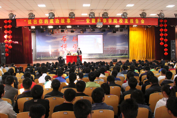 在近2个小时的报告中,五名校友与大家共同分享了他们成长、成功的故事。他们中有的艰苦创业,不断进取,拥有了自己的公司;有的勤于钻研,勇于创新,成为了企业优秀的管理人员;有的在基层的工作岗位上默默耕耘,无私奉献……可以说,他们都是我们新华学子中的优秀代表,在他们身上集中体现了“厚德、求真、博学、创新”的新华精神和新华学子艰苦奋斗、肯于钻研的优秀品质。