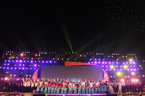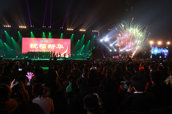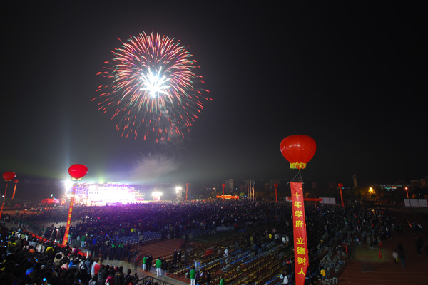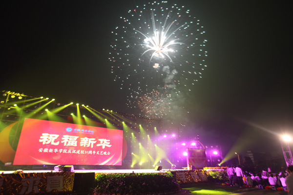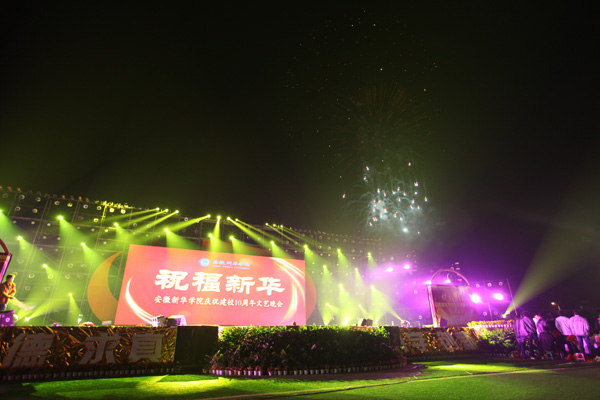 在十周年校庆活动中,备受瞩目的“祝福新华”主题文艺晚会于11月6日晚在祥云体育场盛大开场。本场晚会特邀了安徽电视台节目主持人和当红青年偶像参加演出,全校师生积极参与演出,取得了良好的演出效果。