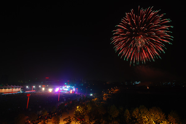 在盛大的烟火表演中,晚会圆满落下帷幕。 (学院办公室、校庆办公室)