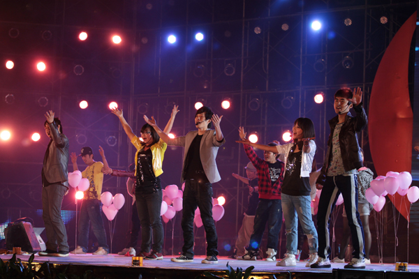李康威、王康、罗亚婷、姚佩琼、张恒、杨涛、孙鹏飞、黄舒、杜凯(吉他伴奏),校大学生艺术团舞蹈队(伴舞)表演)