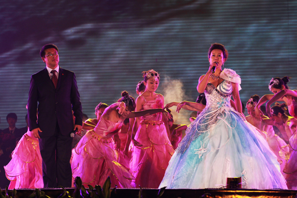 (大型歌舞《新华颂》由马琪、童慧(特邀)演唱,校大学生艺术团舞蹈队伴舞,