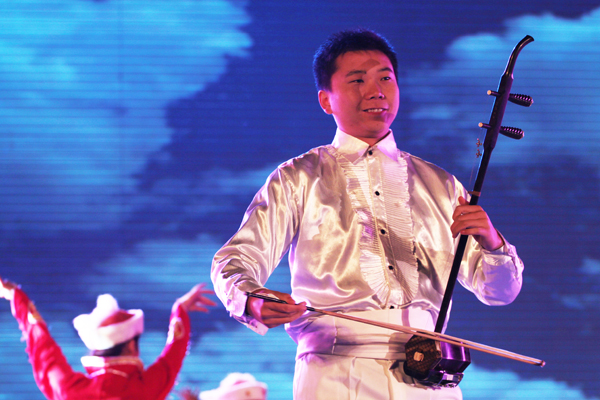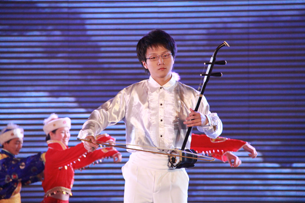 (二胡与舞蹈《赛马与光明行》由窦梅鹏老师和任玉鑫同学表演,校大学生艺术团舞蹈队伴舞。表演者技艺精湛,