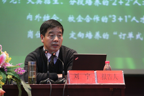 安徽科技学院院长刘宁做了主题为“应用型本科院校建设的思考与实践”的报告。他从对应用性高等教育、应用型本科院校和应用型人才的认识及如何建设应用型本科院校等四个方面阐述了对应用型本科院校建设的思考。随后,他结合安徽科技学院的实例,生动、细致的介绍了安徽科技学院应用型本科院校建设的具体做法和实践经验。具体包括坚持应用型人才培养的办学定位、改革人才培养方案、创新人才培养模式、加强应用型学科专业建设、加强实践教学体系建设、加强“双能型”教师队伍建设和加强创新创业人才培养等七个方面。