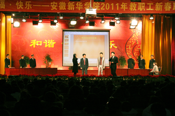 1月21日下午,一场以“幸福 和谐 快乐”为主题的BB贝博艾弗森官方网站2011年教职工新春联欢会在学院大礼堂隆重上演。集团公司领导、学院领导、老教授及全体教职员工共同参加了本次联欢会,联欢会在一片欢声笑语中进行。