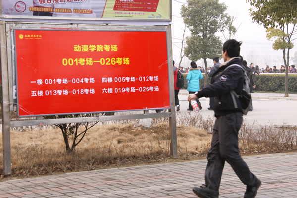 (一名考生经过考场指示牌瞬间)