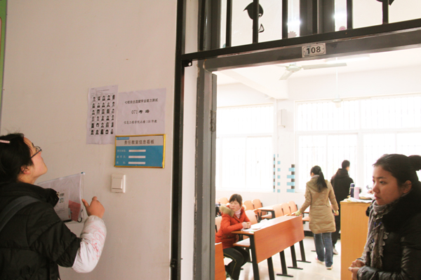 (一名考生在查找自己的考场)