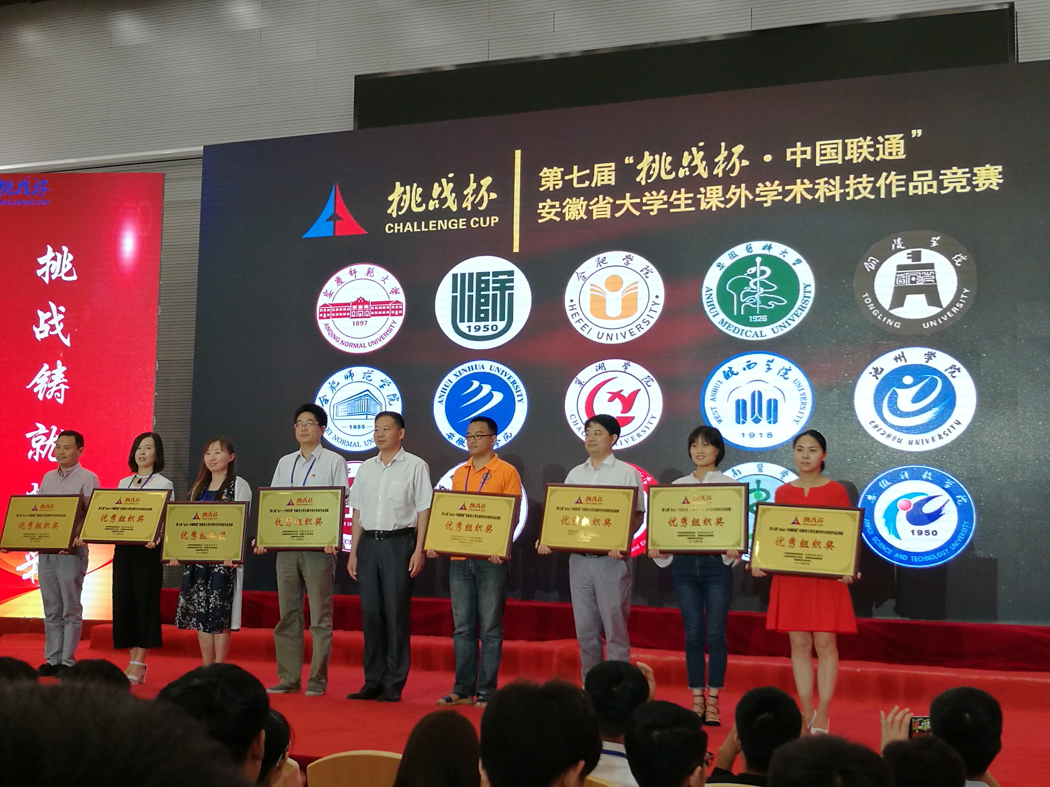 本网讯(通讯员:陈晓涵)6月5日,由共青团安徽省委员会、安徽省教育厅、安徽省科学技术协会、安徽省社会科学院、安徽省学生联合会等单位共同主办,安徽理工大学承办的第七届“挑战杯”安徽省大学生课外学术科技作品竞赛(以下简称“挑战杯”)成功举行。贝博官网学子获得一等奖一项,二等奖三项、三等奖两项。贝博官网首次获得“优秀组织奖”和“显著进步奖”。