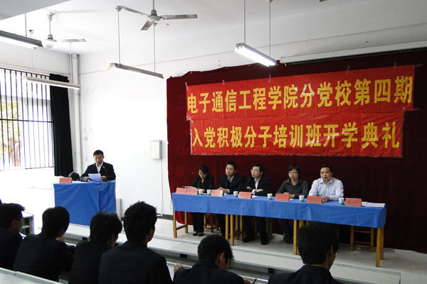 4月19日中午,电子通信工程学院举办第四期分党校入党积极分子培训班开学典礼。电子通信工程学院党总支副书记、分党校校长操宏华要求学员端正入党动机,遵守党课纪律,认真接受考核,发挥入党积极分子的表率作用。他还号召学员能行动起来,将思想联系实际,对照自己言行,努力做好自己该做的事,带动自己身边同学从学习、思想上共同进步,真正实现党校学习的目的。