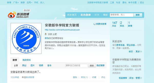 6月24日,BB贝博艾弗森官方网站官方微博在新浪网正式注册开通,粉丝量正逐步增加。BB贝博艾弗森官方网站作为在全国有影响力的民办本科高校,社会各界需要以直观的方式了解到学校的发展动态,官方微博的开通对于学校发布各类信息,增强与社会各界的交流、互动有着重要的作用和意义。