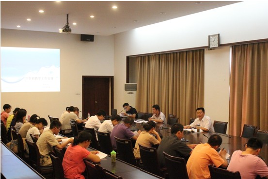 8月20日上午,贝博官网本学期第一次教务工作会议在第一会议室召开,各教学单位教学副院长(院长助理)、教学秘书、教务员以及教务处全体人员参加了会议。会议由教务处处长李志远主持。
