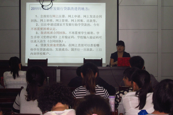 本次培训主要包括新学期办理新、老学生助学贷款缴费工作及其注意事项,新生及毕业生档案管理,学生保险办理流程,辅导员心理工作实务等内容,由学生处相关工作人员对全体辅导员进行培训、答疑。