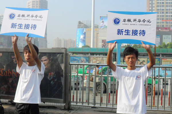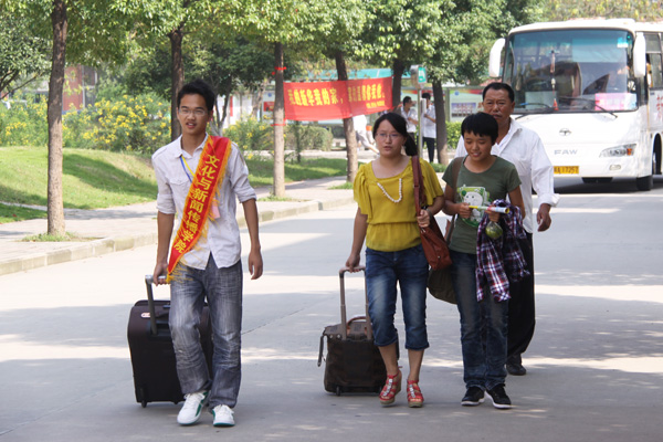 “新华学院的吗,我来帮你拎行李,我们有校车送你们去学校。”