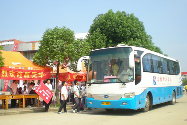新生报到期间接站是学校迎新工作的重要环节,总务处车队承担新生及家长接送任务。为了保证新生的顺利到校,校车在火车站汽车站全天接站,热情细致地为刚刚下车的新生和家长们提供温暖、周到的服务。在基本保障教职工日常上下班乘车的同时,早晨6:00起全天候来回穿梭于学校和车站之间,有的驾驶员师傅都顾不上吃饭,一直工作到深夜,保证了学生及家长能顺利到达学校。阳光下一辆辆大客车蜿蜒驶入校园,各二级学院的迎新学生高举着宣传板在车下守候,热情地张开欢迎的怀抱。