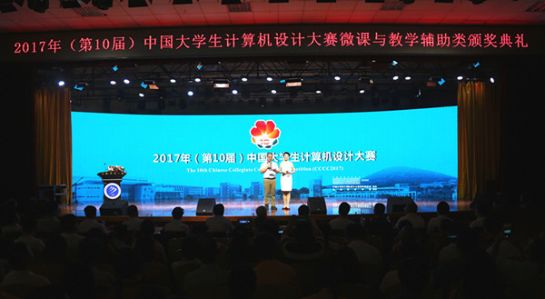 本网讯(王友雅,摄影:金政)8月1日至10日, 2017年(第十届)中国大学生计算机设计大赛数字媒体类动漫游戏组、微课与教学辅助类现场决赛在贝博官网举行。8月9日下午,微课与教学辅助类现场决赛落下帷幕,闭幕式暨颁奖典礼在学校大礼堂举行。