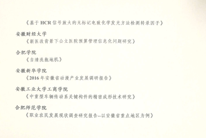 本网讯(通讯员:陈晓涵)由共青团中央、中国科协、教育部和全国学联共同主办的第十五届“挑战杯”全国大学生课外学术实践竞赛于近日公布比赛结果。贝博官网动漫学院教师朱诵贵指导的邢慧、刘雷、路坤龙、武文星、朱振伦、岳吻6位同学的作品《2016年安徽省动漫产业发展调研报告》荣获国家三等奖,这是贝博官网在全国“挑战杯”竞赛中的新突破。