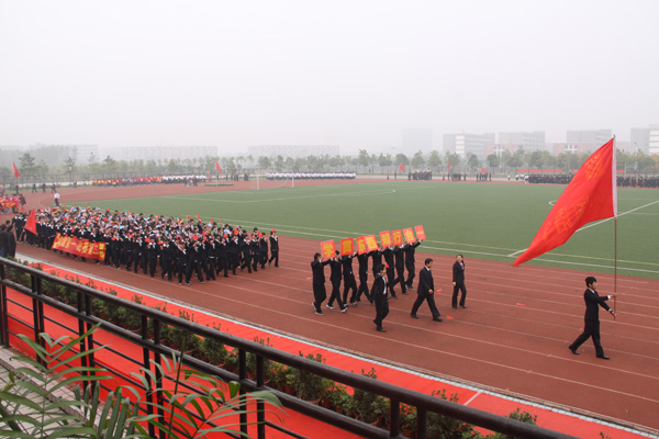 11月4日,贝博官网第五届田径运动会在祥云体育场隆重举行。在开幕式上,各二级学院代表队以及教职工代表队从主席台前缓缓走过,等待着校领导的检阅。运动会中各个二级学院的方阵队表演作为运动会开幕式的一个项目,每年都会有不一样的表演。