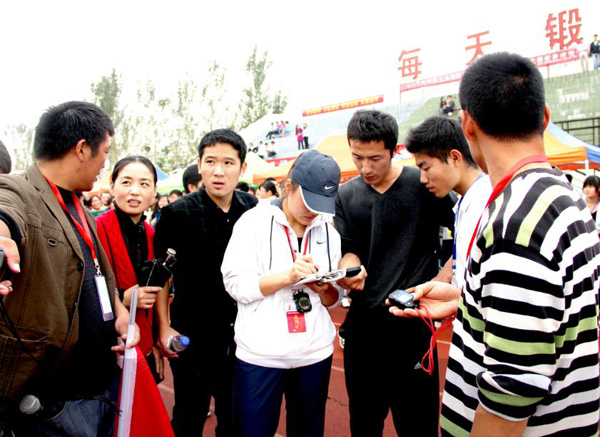 校运会上,大学生记者团用他们的相机记录下运动员们在赛场上矫健的步伐和冲向终点的喜悦时刻。