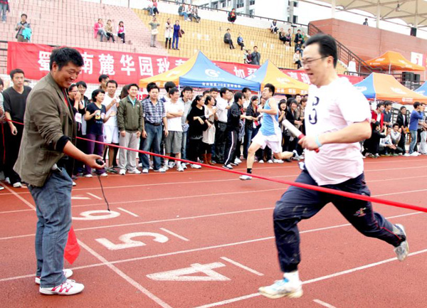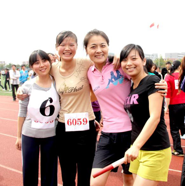 (文化与新闻传播学院教工组的“接力姐妹花”)