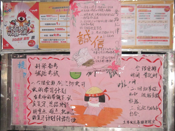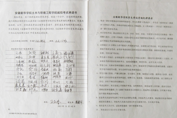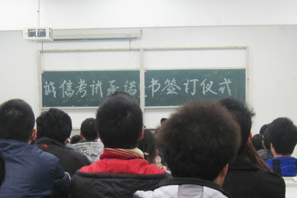 为此,土木与环境工程学院各班相继召开主题班会,开展诚信考试为主题的教育活动,将考前准备和考试诚信作为本月的板报主题在教室张贴;同时为了营造良好的考前氛围,土木与环境工程学院团总支、学生会和助理团等学生组织将考试要求和考前的复习方法通过漫画的形式告知每位同学。为了加强考纪教育,让每一位同学都熟悉考试流程和遵守考场纪律,本月初,全体在校生班级组织开展了诚信考试承诺活动,各班班长、团支部书记集中庄严宣誓承诺诚信考试。全体土木与环境工程学院的学生签订了《BB贝博艾弗森官方网站土木与环境工程学院考试诚信承诺书》,并将承诺内容张贴在班级的宣传栏时时提醒。