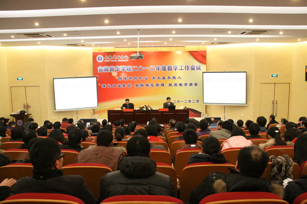 2月13-14日,贝博官网2012年度教学工作会议隆重召开。会议的主要任务是:围绕本科教学合格评估工作,进一步加强内涵建设,以“促进经费投入,促进教学建设,促进管理规范,促进质量提高”为重点,完善教学质量保障体系,实现“三个基本”,全面提升教育教学质量。全体校领导、中层管理人员、教学口主管秘书以上管理人员、系主任(副主任、主任助理)、讲师以上职称的教师参加了会议。本次大会分为四项议程。