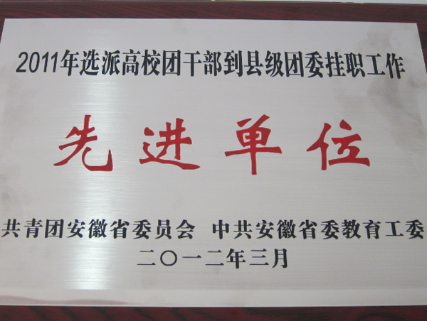 为贯彻落实共青团中央、教育部党组下发的《关于从全国高等学校中选派共青团干部到县级团委挂职工作的通知》要求和团省委、省委教育工委的工作部署,2011年,贝博官网选派吕翔同志赴淮北市濉溪团委进行为期一年的挂职锻炼。贝博官网获安徽省2011年选派高校团干部到县级团委挂职工作先进单位。