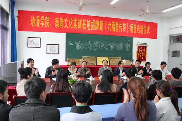 4月20日上午,贝博官网动漫学院与合肥泰尚文化科技有限公司实习实训基地揭牌暨《六福星传奇》动画片制作项目启动仪式在动漫学院会议室举行。副院长杨世国教授,合肥市科技局副局长、合肥国家动漫暨服务外包产业基地管委会主任马鸣,贝博官网教务处处长李志远、动漫学院院长孙家启教授,合肥泰尚文化科技有限公司总经理纪杰,贝博官网招就办及相关部门的负责人出席了启动仪式。