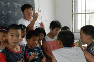 队员们把支教活动命名为“爱心课堂”,内容涵盖了自然科学、趣味语文、英语和美术。课堂上,从未接受过多媒体教学的孩子们被有趣的课件所吸引,纷纷簇拥在队员旁边观看电脑上的内容。天气炎热,细心的实践队队员还为孩子们买来冷饮消暑。