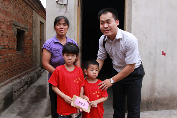 在聋儿学校老师的带领下贝博官网暑期实践队员详细走访了两个贫困家庭,分别为王海晨、王展鹏姐弟俩及任立青、任嘉欣与任开心兄妹三人的家庭各送去慰问金300元。实地的调查让队员们感触很深,这些聋哑孩子很多都是遗传疾病,一家兄妹几个都是聋哑人。本来就不富裕的家庭一下子碰到这样的打击,加上给孩子们的治疗,让这样的家庭背上了沉重的负担。