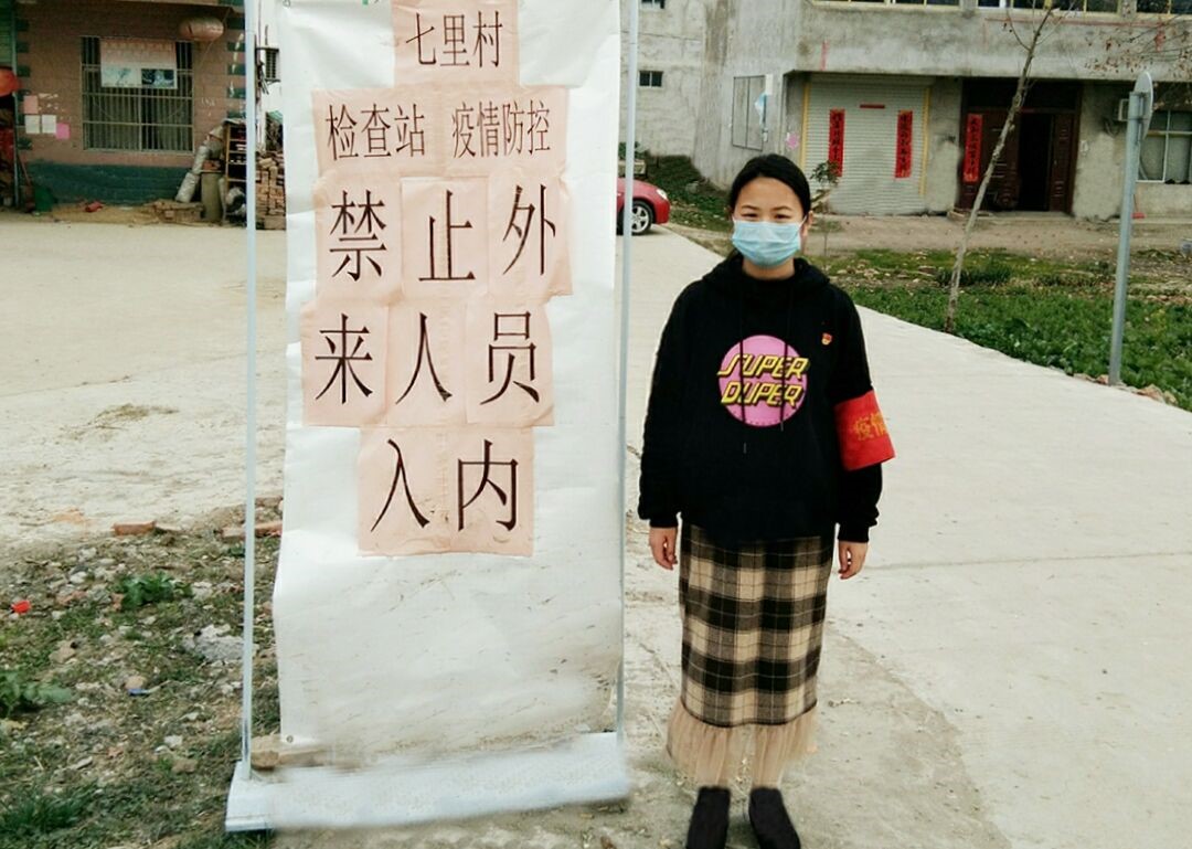 祝夏丽,系财会与金融学院第一学生党支部正式党员,为协助村里做好新型冠状病毒预防工作,她主动申请参加安徽省池州市东至县木塔乡木塔村的防疫工作,从早8:00到晚21:00检查进出人员动态,认真履行一名党员的责任和义务。工作地点虽然简陋,但她的心却是热忱的。