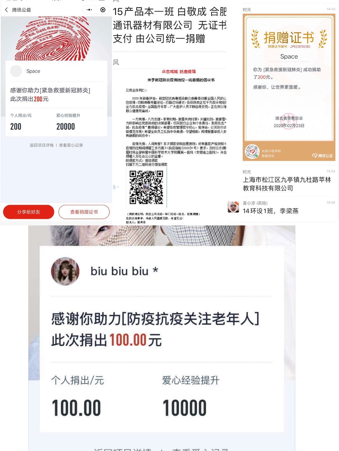 校友李梁燕、申伟、白敬成等同学更是通过不同的平台,自主发动捐款捐物,在各自的能力范围内为抗击疫情贡献力量。
