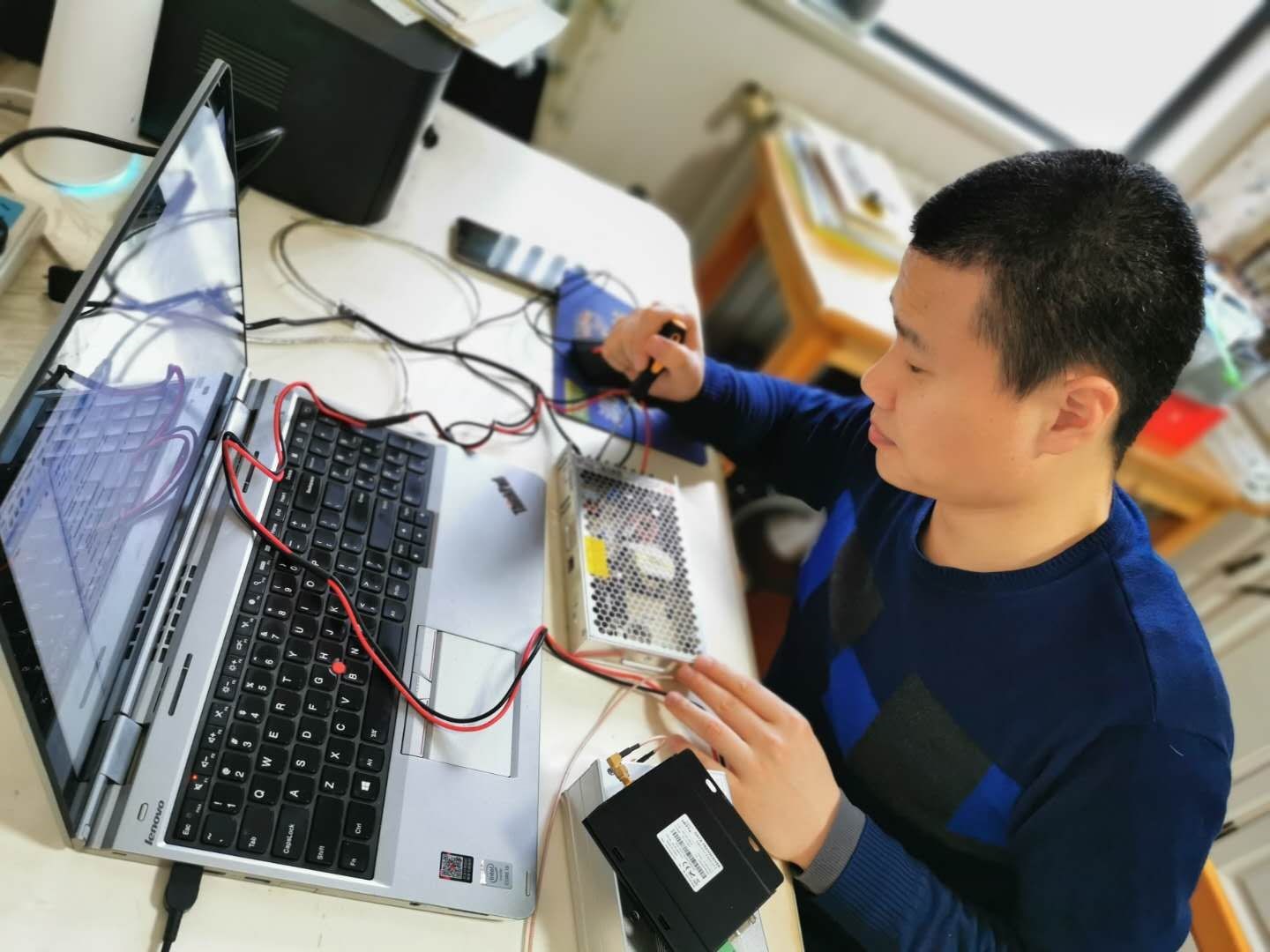 目前,我院承担的安徽省高校自然科学研究项目“低电导率流体流量测量技术研究”进入关键阶段。项目组负责人黄世钊博士利用居家隔离时间,对系统电源进行调试。