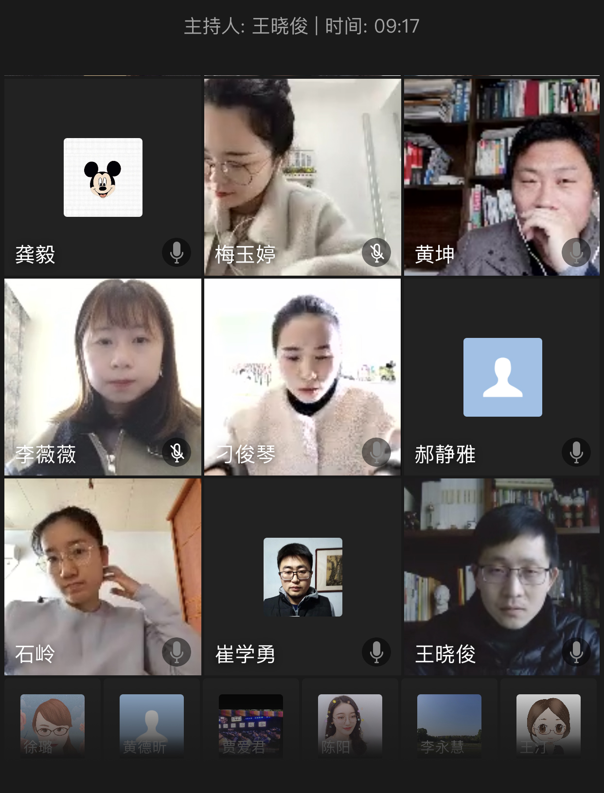 会上,艺术系副主任王晓俊首先介绍了我系线上教学的整体情况,并提出在全体授课教师的努力下,学院教学检查组和师生反映较为良好。随后,各门线上课程的授课教师分别介绍了自己课程所选的平台运行情况、学生出勤情况、课程组织形式、教学互动、作业布置等方面的情况,并针对线上教学遇到的各种新问题、平台使用情况进行交流分享,就网络教学中遇到突发问题,如何及时灵活应变地转换教学方式方法展开了讨论。最后,王晓俊对各位老师提出的问题与建议做了回应,希望授课教师们能取长补短,相互借鉴,打造“一流”课堂。