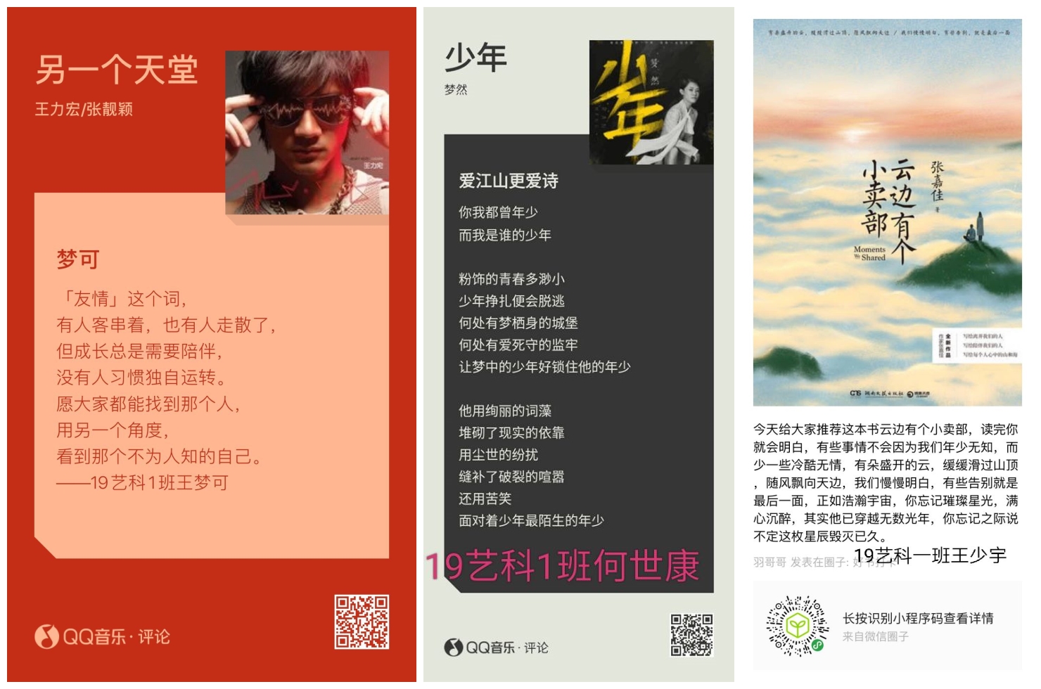 在线上教学开展的同时,为进一步丰富课余生活,将每日碎片化的时间充分利用,帮助同学们养成良好的自律习惯。“艺初班”的同学们积极参加艺术学院开展的“E”起云系列活动,包含“天下大评(影评歌评书评)、每天运动三分钟、GET新技能”。同学们通过每日“微博超话”线上打卡运动三分钟、每周为自己喜欢的书、电影、音乐(任选其一)写一篇评论,每月GET一个新技能来提高自我管理能力,潜移默化的在班级内部形成一股积极向上的优良班风。