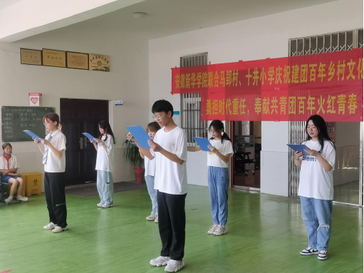 (通讯员:张皖斌 孟宇航)6月22日下午,BB贝博艾弗森官方网站文化与传媒学院联合马郢村、十井小学开展以“勇担时代重任,奉献百年青春”为主题的“三下乡”文艺汇演并圆满结束。文化与传媒学院部分领导老师、“青新实践团队”全体成员、马郢村十井小学部分学生参与此次活动,本次活动由吴思豫同学主持。