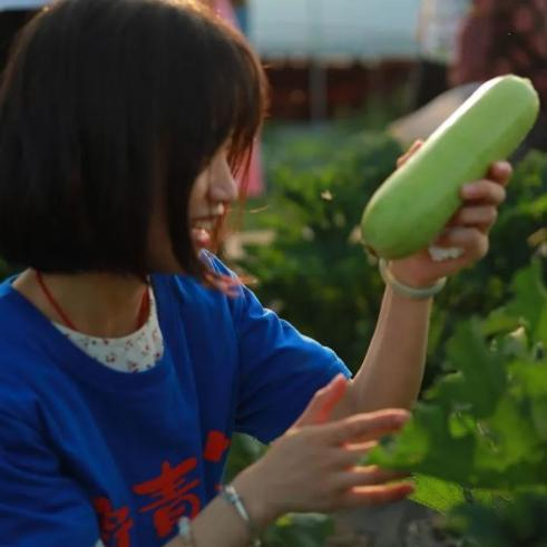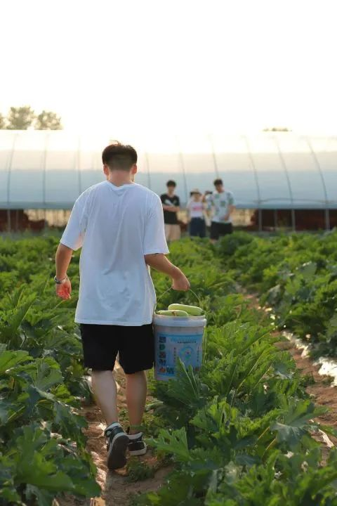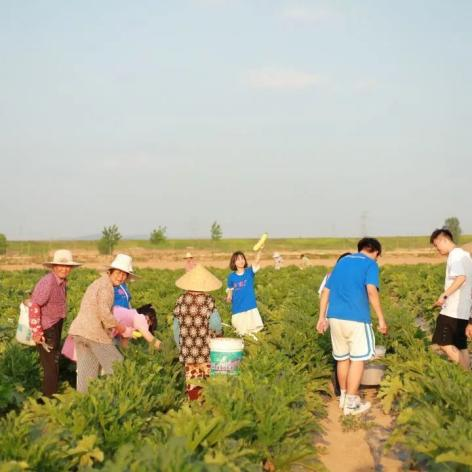 “华园青年艺术+”社会实践团队访谈完毕后,驱车来到当地蔬美种植合作社,正逢村民在采摘生瓜。虽天气炎热,但阻挡不住团队成员志愿服务的初心。烈日下,他们一手提桶,一手握剪刀,在村民的指导下一堂生动的劳动教育实践课程就此展开。劳动教育实践与志愿服务相结合,点燃了青年学子不怕吃苦的奋斗热情,同时也坚定了青年学子在未来学习生活中努力奋进、实现目标的信念。