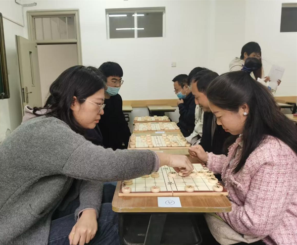 比赛分男子组和女子组,每场比赛时间为15分钟,采取积分制,分别决出前八名。比赛中,教职工们认真思考、谨慎行棋,或调兵谴将、或跃马扬鞭,他们淡定自若,冷静地观察着棋盘,谨慎地走着每一步棋,虽然表面平静,但棋盘上已经上演着激烈的“楚汉争霸”。最终,孙多如、王军(体)、张杰、王伟、孙自富、宋书磊、尹路、王智获得男子组前八名;牛曼兰、金怀梅、乔红娇、刘雯杨、孙礼彤、李平、陶苑、朱梦云获得女子组前八名。