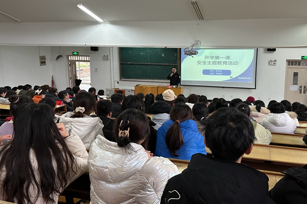 本网讯(通讯员:赵影 王煜)为进一步增强学生安全防范意识,营造安全稳定的校园环境,配合贝博官网正在开展的“开学季 防电诈 保平安”宣传月活动和电动车整治工作,2月23日下午在教三112阶梯教室开展了“开学第一课——安全主题教育”宣讲活动,本次活动邀请了高新派出所何驰副所长,高新交警大队万玉荣警官宣讲,保卫处副处长仇陶主持,各二级学院辅导员和学生班干部近200人参加。