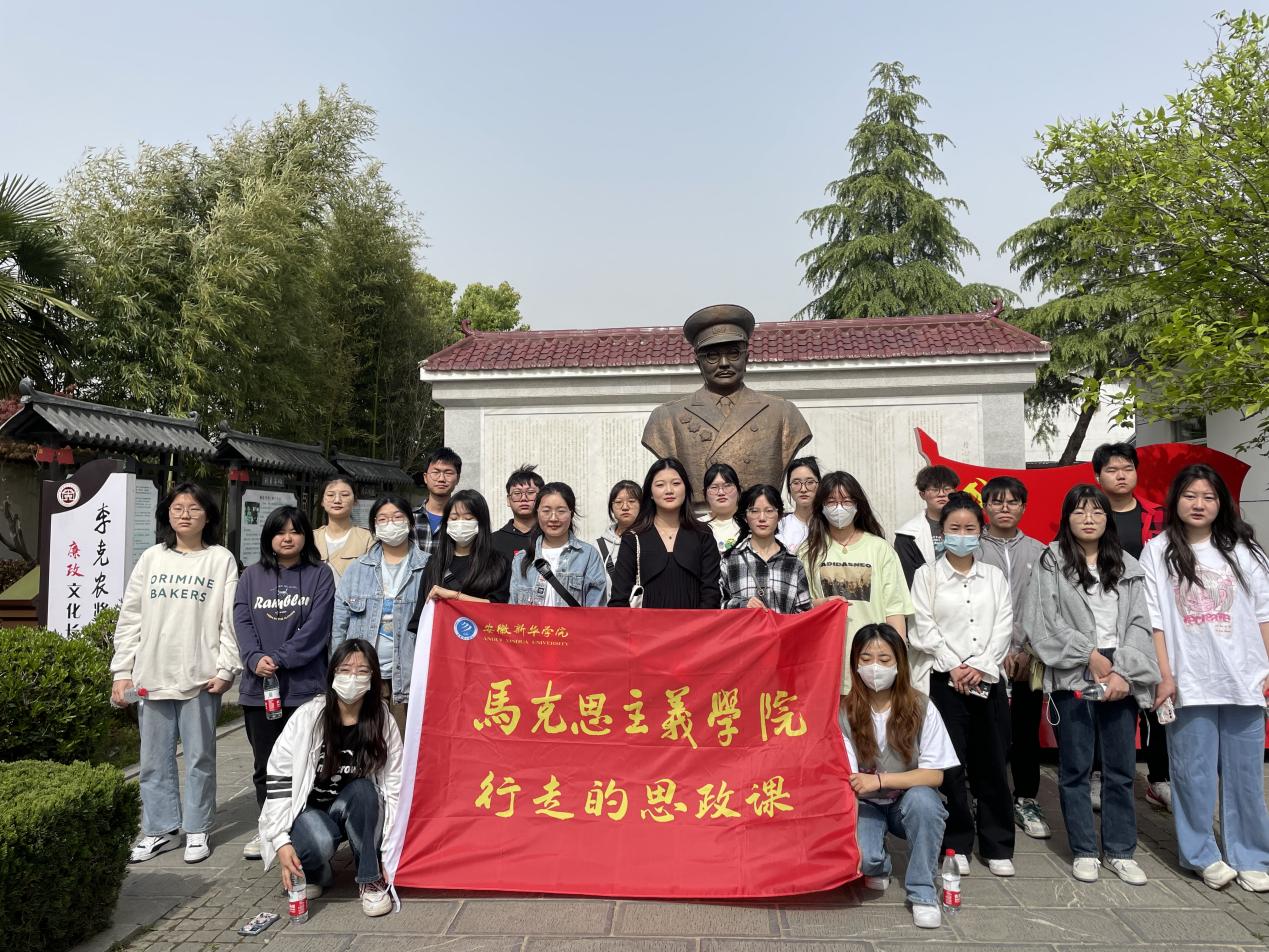 本网讯(通讯员:李静)为全面学习贯彻习近平总书记关于思政课建设的重要讲话精神,充分发挥红色资源的铸魂育人功能,推动思政教育入脑入心入行,贝博官网马克思主义学院积极探索将地方红色文化资源融入课程,把课堂搬到教育基地,把教学落到实处。4月12日上午,马克思主义学院开展“行走的思政课”系列实践活动,组织教师代表和优秀学生代表深入爱国主义教育基地——李克农故居参观学习。